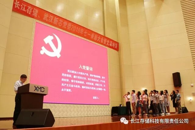 随后,在鲜红的党旗下,长江存储党委书记彭红兵同志带领19位新党员高举右手,宣读入党誓词。通过宣誓,新党员们更加坚定了理想信念,将不忘初心,永远前进。